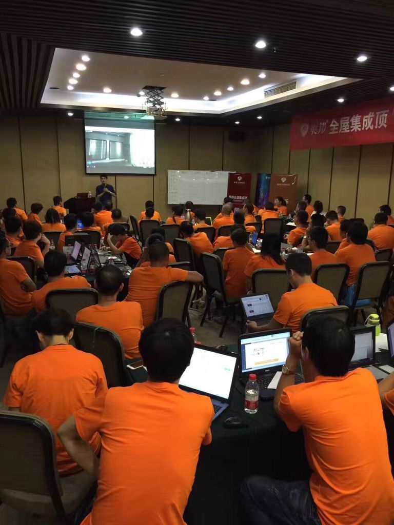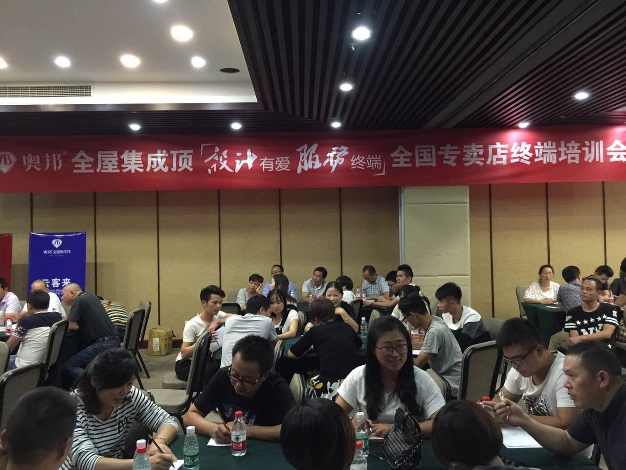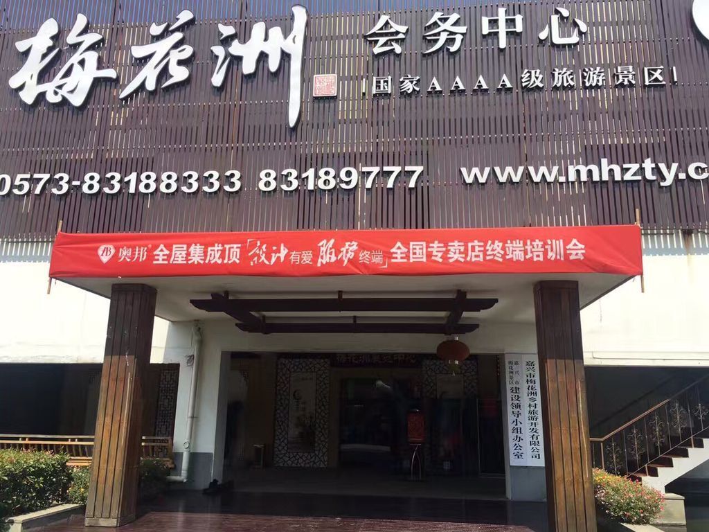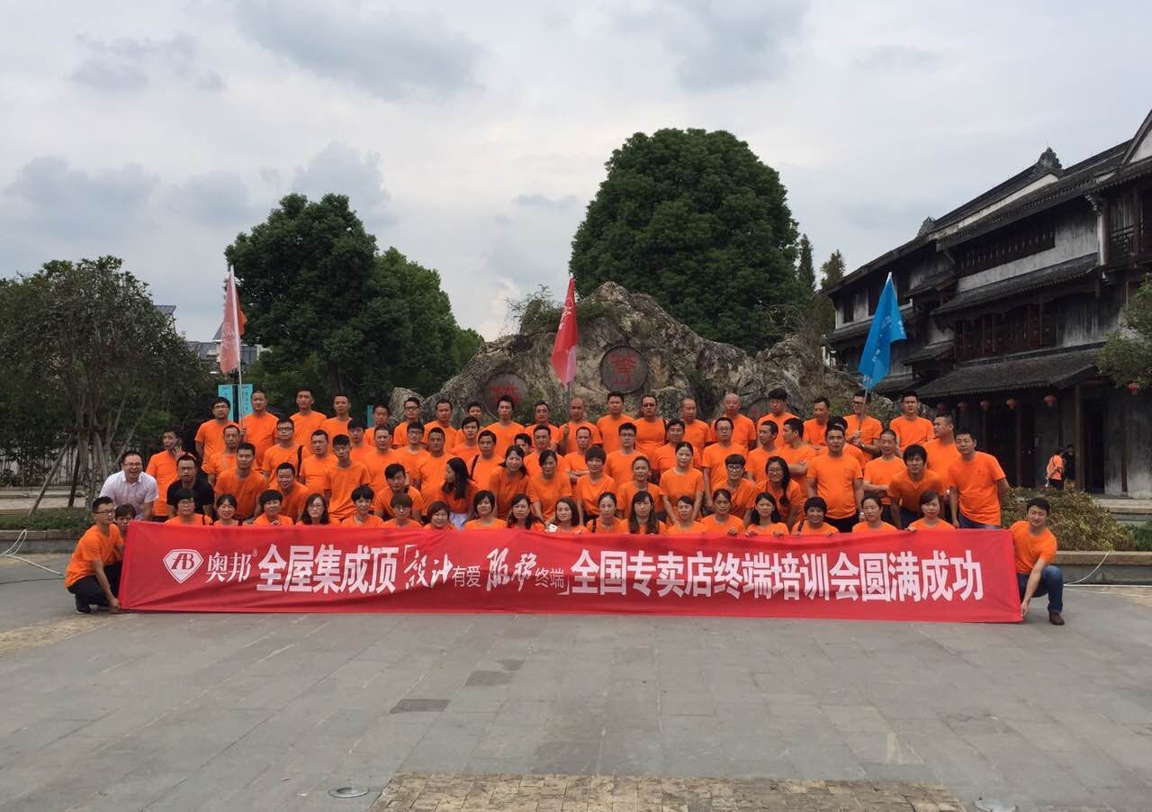 為有效幫扶經銷商打造一支高素質高水準的專賣店隊伍,2016年9月20日至9月22日上午,奧邦全屋集成頂在國家4A級景區——梅花洲,舉辦了一場“設計有愛,服務終端”的培訓會。奧邦以專業的產品知識、最新的設計軟件,為終端經銷商客戶提供行之有效的設計方案和服務建議的培訓,力求實現奧邦全屋集成頂專賣店的全方位提升。