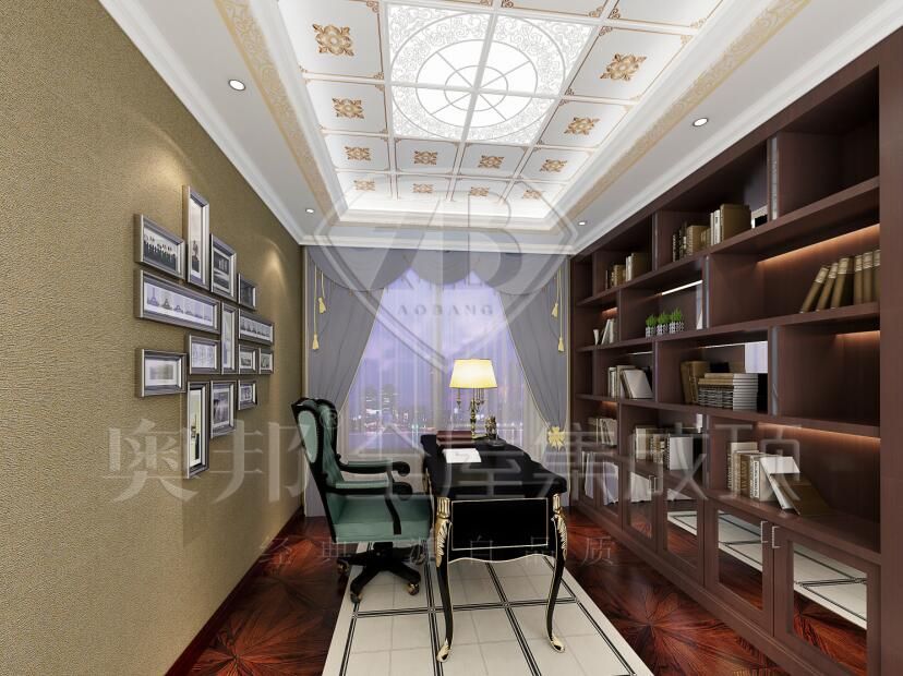 這樣一幅美麗的畫面,興許會引起陽光的艷羨,令它忍不住越過窗臺偷偷溜進來,繞著發絲飛舞。當頭頂的燈光,搭配書桌上的暖黃小臺燈,烘托咖色的書架,當你置身其中時,一掃秋冬的冷寂,立刻讓書房變得生動活潑起來了。