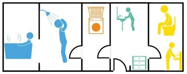 衛(wèi)生間,如何在一個(gè)有限的空間,放下馬桶、浴缸、臺(tái)盆,還要做到干濕分離,整潔,使用方便,采用通風(fēng)都得好,這對(duì)衛(wèi)生間的空間布置就提出了更高的要求。
