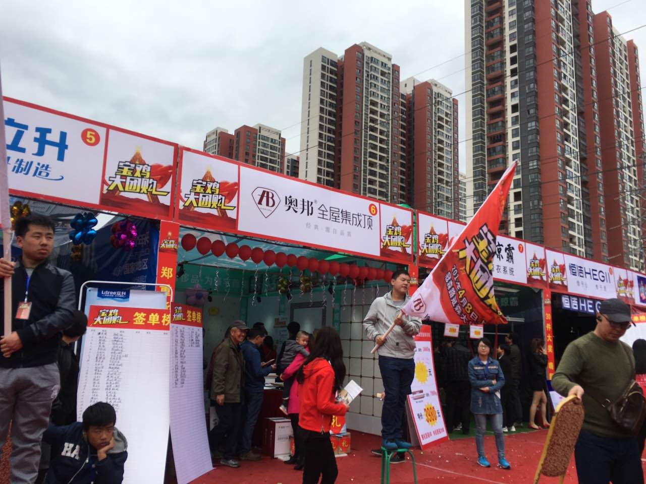 2017年4月8日,奧邦全屋集成頂與諸多家國內一線家裝建材品牌,攜手參加了在寶雞客運中心廣場舉辦的寶雞大團購活動,旨在給寶雞市民打造高端建材家裝采購的全方位購物平臺,并提供實惠便利的建材家裝購物條件。