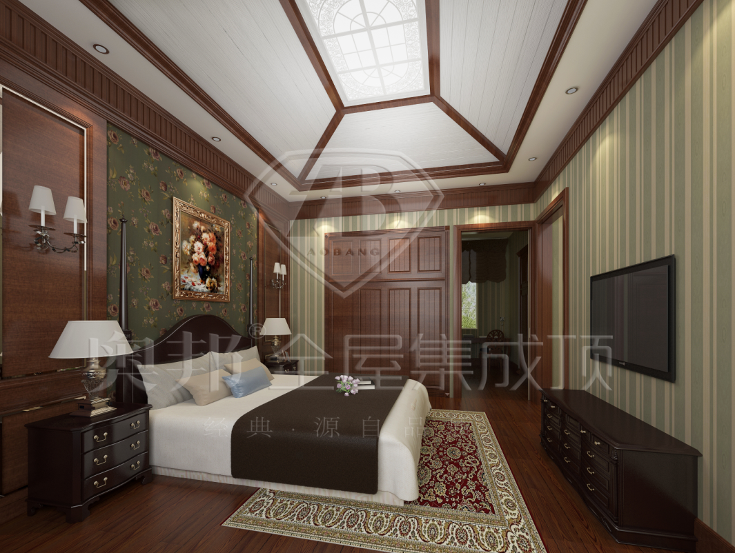 臥室頂面作適當的裝飾,不僅能美化室內環境,還能營造出豐富多彩的室內空間藝術形象。在選擇吊頂裝飾材料與設計方案時,要遵循既省材、牢固、安全、又美觀、實用的原則。吊頂不易過于復雜,面積稍大的可做二級吊燈、分層吊頂,小空間適宜平面式吊頂,而空間層高低的則可用特殊的貼頂式安裝方法進行吊頂。