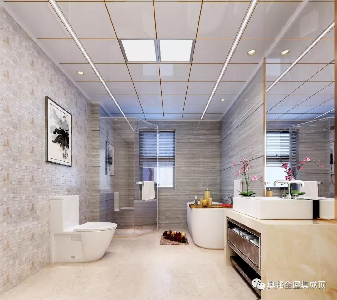 奧邦簡約衛(wèi)生間:春季似乎不需要過多裝飾與渲染,硬朗極富線條感的集成頂,在空中劃出優(yōu)美弧線,墻體錯落有致的紋理,打破空間束縛,與環(huán)境完美融合。一支鮮花盛開,突顯春天的新鮮、明亮、快樂。