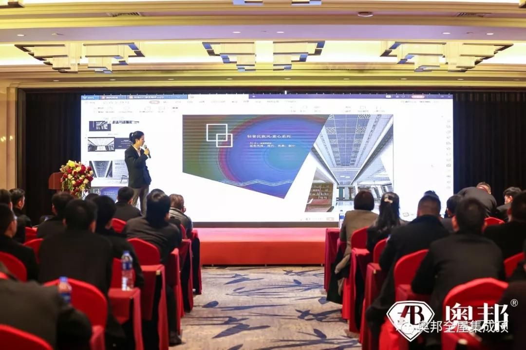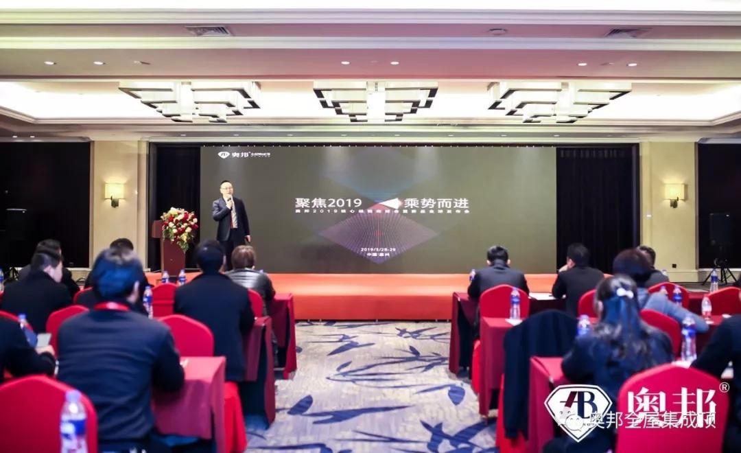 奧邦研發部部長于治平先生從集成吊頂、集成墻面、電器三大模塊,闡述奧邦新升級產品的優勢,為奧邦經銷商家人2019新征程增加信心。