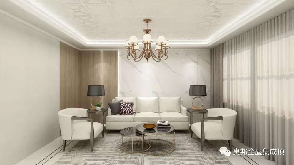 輕奢風撩人又好看,讓家的顏值瞬間飆升。奧邦輕奢客廳主色調以具有高級感的奶白色、灰色為主,搭配金絲邊線條,將空間呈現出優雅范兒,提升整體質感,給人精致、高檔、眼前一亮的感覺。